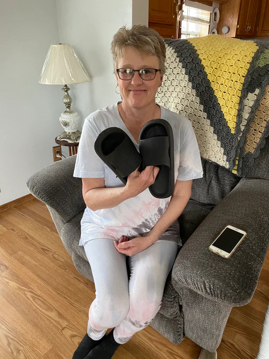 The soft, supportive sole eases joint pain from arthritis while aligning your body to relieve sciatic nerve discomfort. Pillow Slides do the work so your feet don’t have to.